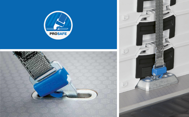ProSafe je integriran sistem za pritrjevanje tovora z enotnim vmesnikom: isti pas ali mrežo lahko pripneš na talne plošče SoboPro, pritrdilne letve, regalne sisteme SR5 (in Globelyst4) ter - kjer je smiselno - tudi na originalne pritrdilne točke vozila.